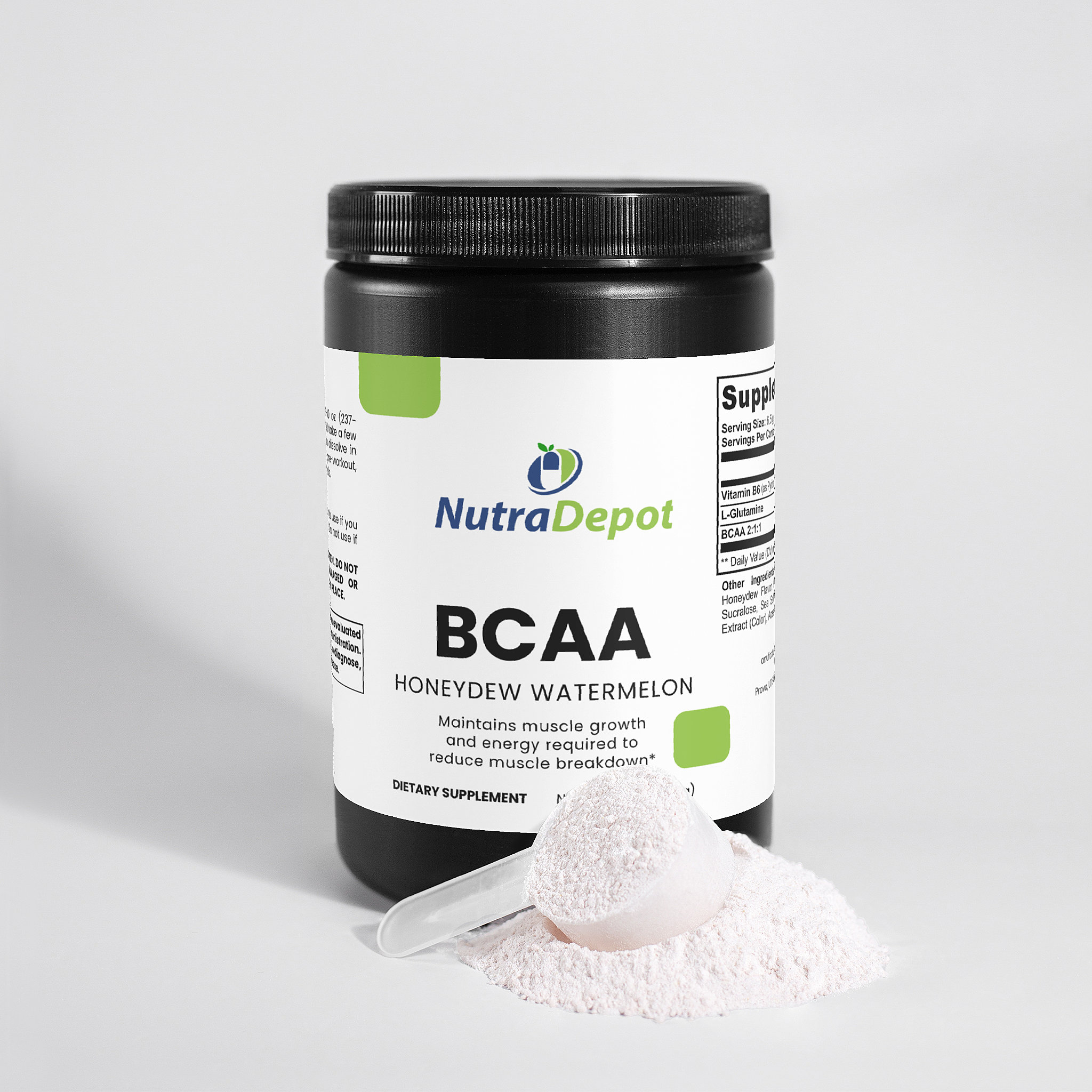 Ingredients: Vitamin B6 (as Pyridoxine Hydrochloride), L-Glutamine, BCAA 2:1:1, Citric Acid, Honeydew Flavor, Watermelon Flavor, Potassium Citrate, Silicon Dioxide, Sucralose, Sea Salt, Beet Powder (Color), Grape Skin Extract (Color), Acesulfame Potassium.