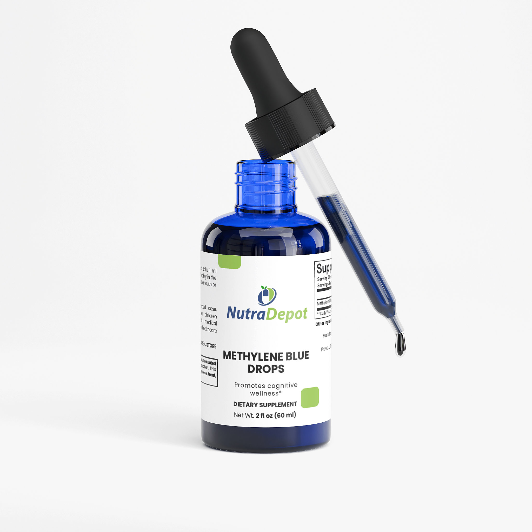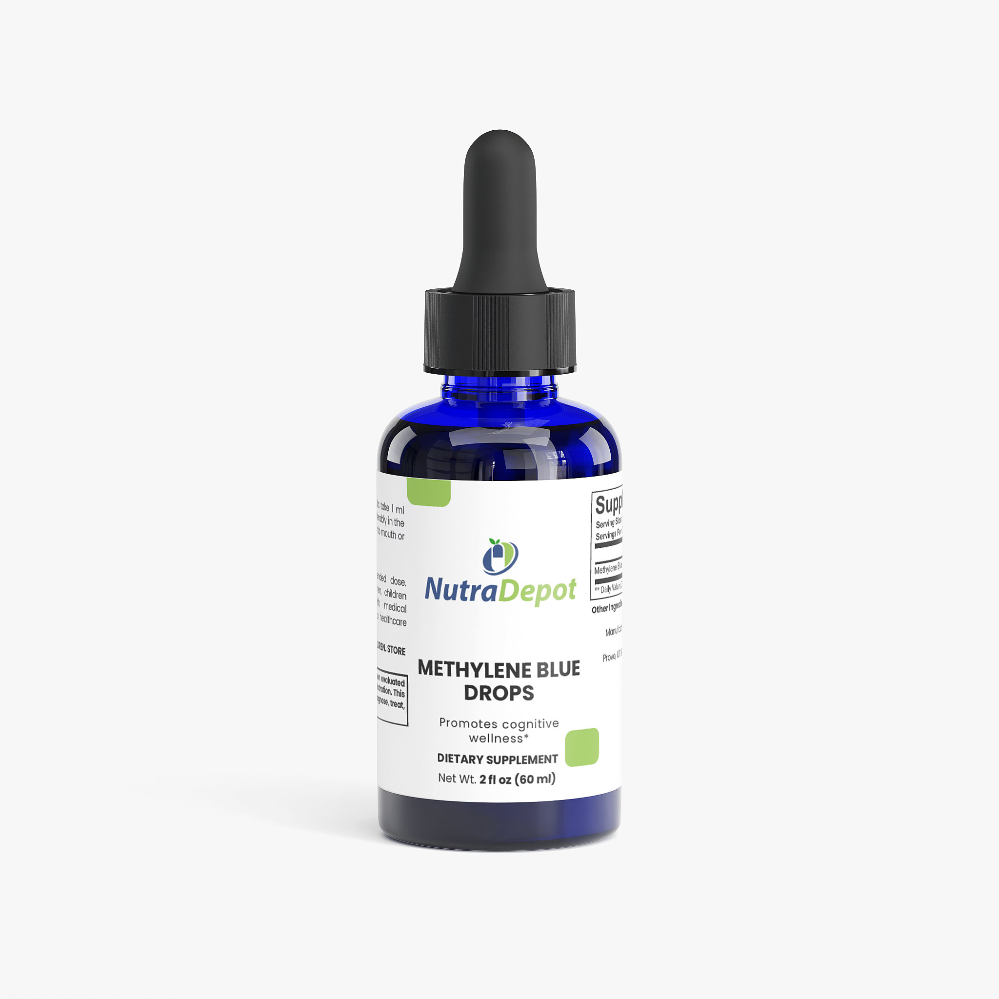 Methylene Blue Drops are formulated to support normal cellular energy and cognitive wellness. Each serving delivers 10 mg of Methylene Blue Powder, an ingredient studied for its role in promoting healthy mitochondrial function and normal cellular metabolism. Provides support for focus and alertness as part of overall cognitive and cellular health.